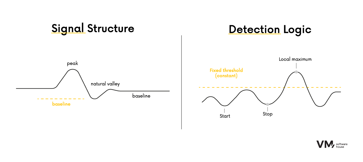L’équipe projet a conçu un algorithme complet de détection de pics, basé sur une logique d’analyse de signal, optimisé pour fonctionner sur des dispositifs à ressources limitées.