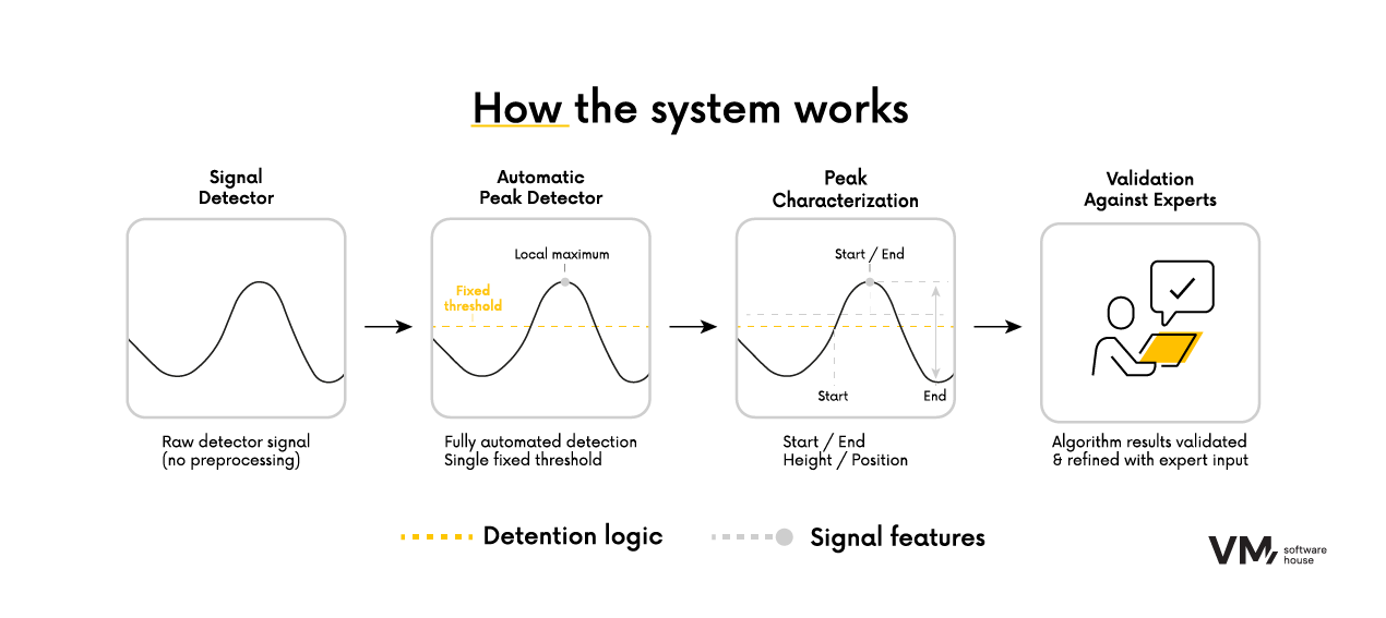 - Prêt pour la production – système intégrable au logiciel du client, évolutif vers des fonctions avancées comme le seuillage adaptatif ou l’analyse multipic.