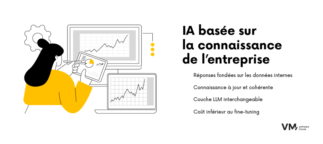 Une approche de plus en plus adoptée est le RAG (Retrieval-Augmented Generation). Dans cette architecture, le LLM joue le rôle de couche linguistique, tandis que les réponses sont générées à partir des données internes de l’entreprise.